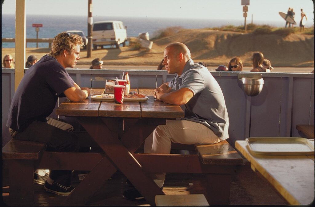 Cohen developed the story with Gary Scott Thompson, Erik Bergquist, and David Ayer, the latter of whom transformed the script from a “mostly white and suburban” New York story into a diverse Los Angeles-set thriller. The plot was simple to the point of being derivative: Brian O’Conner, an undercover LAPD officer, infiltrates the street racing crew of Dominic Toretto, falls in love with Dom’s sister Mia, and must choose between his loyalty to the law and his loyalty to his new family. If this sounds suspiciously like Point Break with cars instead of surfboards, that’s because it is. Director Kathryn Bigelow’s 1991 classic featured an FBI agent infiltrating a gang of bank-robbing surfers led by a charismatic guru—swap surfing for racing and Patrick Swayze for Vin Diesel, and you have the basic blueprint.