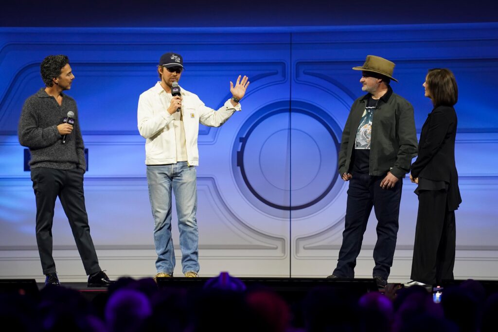 Flynn Gray’s character appears equipped for his own hero’s journey, complete with holster and determined expression. The duo’s chemistry in this single photo suggests buddy-adventure dynamics reminiscent of classic Star Wars partnerships.