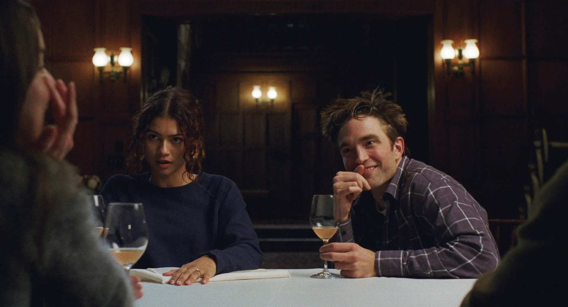 Robert Pattinson plays Charlie, a twitchy museum curator whose meet-cute with Zendaya’s Emma at a coffee shop establishes the film’s off-kilter tone. He’s already anxious from frame one, peering through glasses with “antic gloom,” lying about having read the novel she’s immersed in. When the film jumps forward to their wedding week, the couple joins Charlie’s best man Mike (Mamoudou Athie) and maid of honor Rachel (Alana Haim) for a rehearsal dinner that turns catastrophic during a game of “what’s the worst thing you’ve ever done?”.